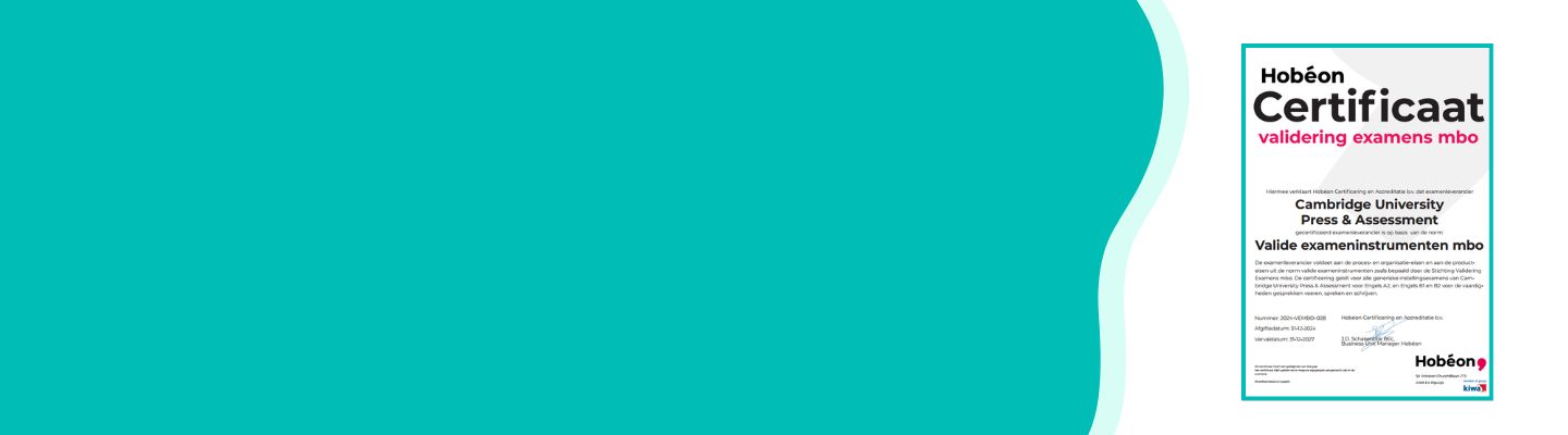 Cambridge English Qualifications zijn grondige examens die het leren van Engels plezierig, effectief en nuttig maken. Onze unieke aanpak stimuleert doorlopende vooruitgang met een duidelijke leerroute om taalvaardigheden te verbeteren. Ons aanbod bestaat uit examens Engels voor algemene doeleinden, scholen, hogere opleidingen alsook voor zakelijke doeleinden.